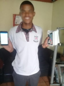 “Ek is baie dankbaar vir die foon. I waardeer regtig die hulp. Ek sal die foon gebruik vir my skoolwerk en ek sal mooi daarna kyk” – Thabo.